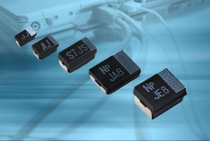 日前发布的电容器适用于计算机、通信和工业应用中的电源管理、电池解耦和储能。采用较大的D和V外形尺寸的器件适用于网络设备、计算机和固态硬盘,较小的A和B外形尺寸的电容器适用于平板电脑、智能手机和无线网卡。电容器增加了电压等级,支持计算机外设的电源电压中常见的12V~20V电压。