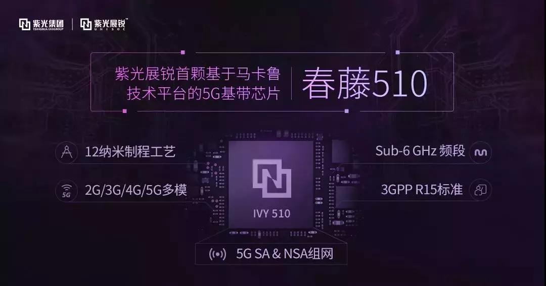 2019年2月,紫光展锐发布5G通信技术平台—马卡鲁及其首款5G基带芯片—春藤510