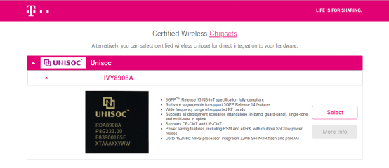 今日,全球领先的移动通信及物联网核心芯片供应商紫光展锐宣布,其物联网产品系列——IVY8908A(国内简称:春藤8908A)成功获得了德国电信Deutsche Telekom在其窄带物联网(NB-IoT)解决方案IoT Solution Optimizer的全球认证。春藤8908A将成为德国电信在IoT Solution Optimizer全球范围的官方推荐芯片平台,而紫光展锐也将进入德国电信在全球IoT市场的供应商体系。
