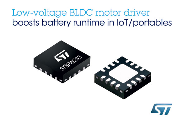 意法半導體高能效單片三相三路電流檢測BLDC驅動器:延長可攜式裝置和物聯網產品續航時間